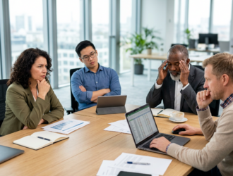 Montagmorgen, 9 Uhr. Zwölf Menschen sitzen in einem Konferenzraum. Die Hälfte tippt auf Laptops, ein Viertel checkt unter dem Tisch…