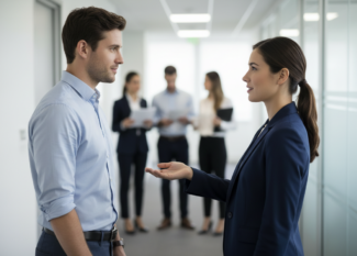 Das Meeting ist vorbei. Die Präsentation war brillant. Die Kollegin…